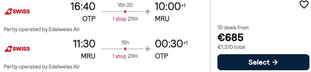 ZBOR: București -> Port Louis, Preț dus-întors 685€/pers, 1-9 Dec 2026