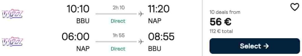 ZBOR: București -> Napoli, Preț dus-întors 56€/pers, 9-13 Iun 2026