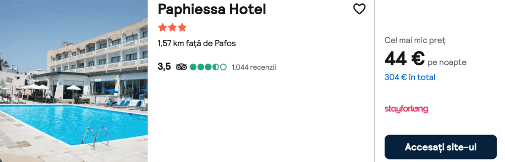 CAZARE 1: Paphiessa Hotel, Preț cameră dublă 304€, Preț persoană 152€, 23-30 Mai 2025 (7 nopți)