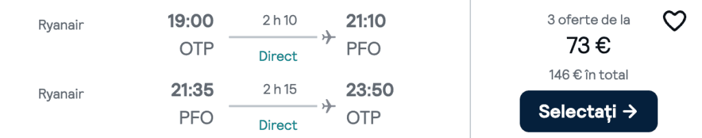 ZBOR: București -> Paphos, Preț dus-întors 73€/pers, 23-30 Mai 2025