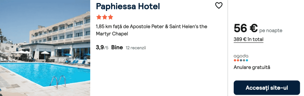 CAZARE 1: Paphiessa Hotel, Preț cameră dublă 389€, Preț persoană 195€, 9-16 Iul 2025 (7 nopți)
