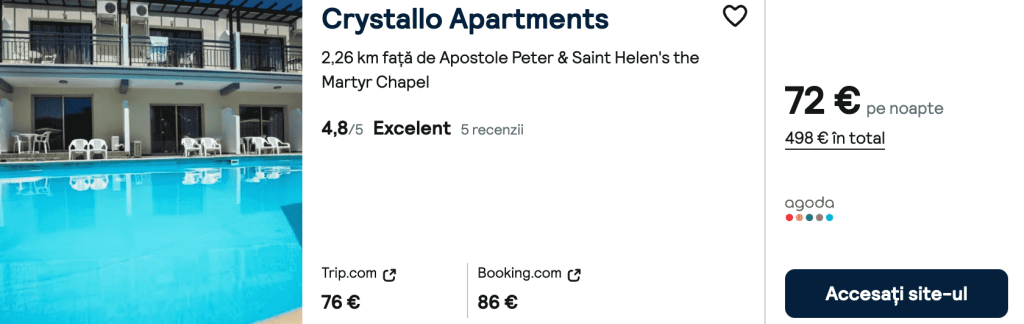 CAZARE 3: Crystalo Apartments, Preț cameră dublă 498€, Preț persoană 249€, 9-16 Iul 2025 (7 nopți)