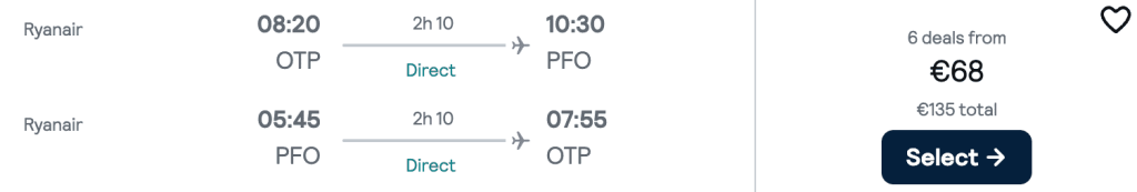 ZBOR: București -> Paphos, Preț dus-întors 68€/pers, 9-16 Iul 2025