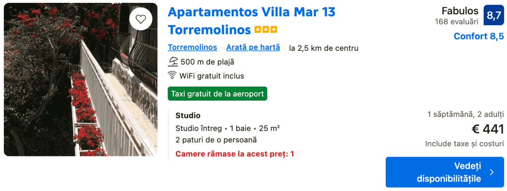 CAZARE 2: Apartamentos Villa Mar 13, Preț cameră dublă 441€, Preț persoană 220€, 20-27 Mai 2026 (7 nopți)