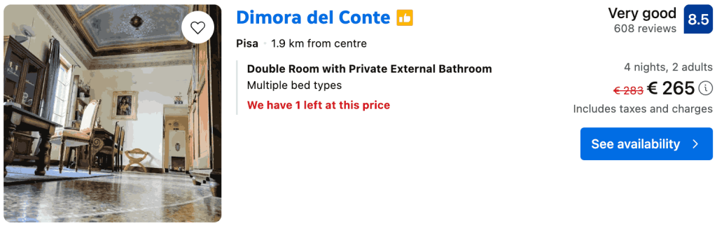 CAZARE 1: Dimora del Conte, Preț cameră dublă 265€, Preț persoană 133€, 5-9 Mai 2026 (4 nopți)