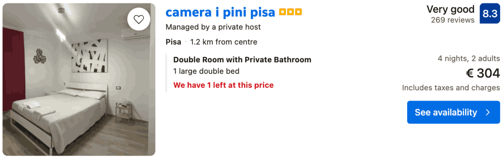 CAZARE 2: Camera I Pini, Preț cameră dublă 304€, Preț persoană 152€, 5-9 Mai 2026 (4 nopți)