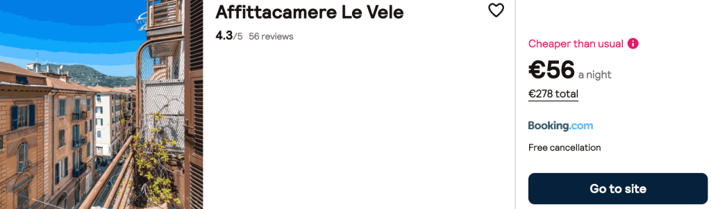 CAZARE 2 (LA SPEZIA): Affittacamere Le Vele, Preț cameră dublă 278€, Preț persoană 139€, 27 Mar-1 Apr 2026 (5 nopți)