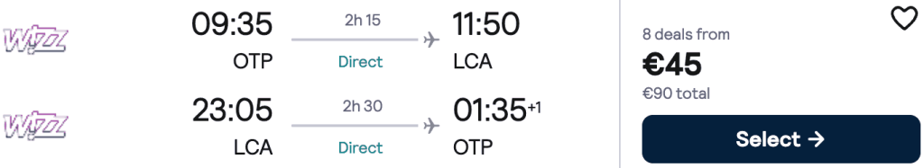 ZBOR: București -> Larnaca, Preț dus-întors 45€/pers, 16-21 Apr 2026