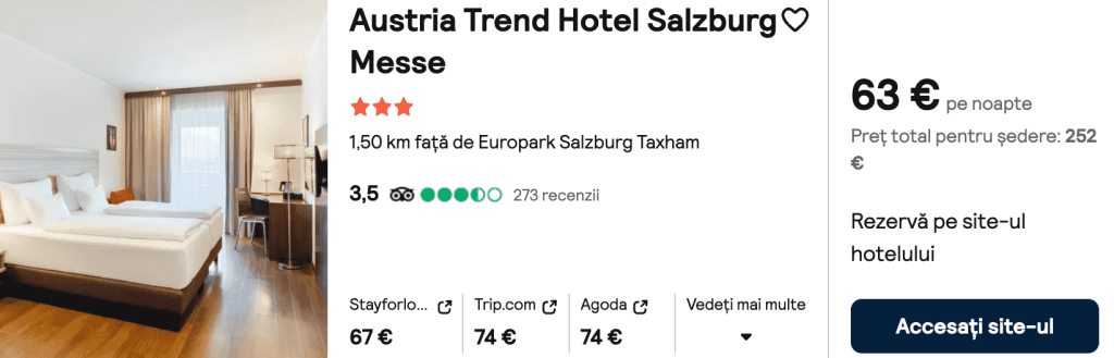 CAZARE 3: Austria Trend Hotel, Preț cameră dublă 252€, Preț persoană 126€, 3-7 Feb 2025 (4 nopți)
