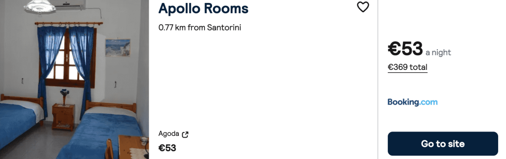 CAZARE 1: Apollo Rooms, Preț cameră dublă 369€, Preț persoană 184€, 6-13 Iul 2025 (7 nopți)
