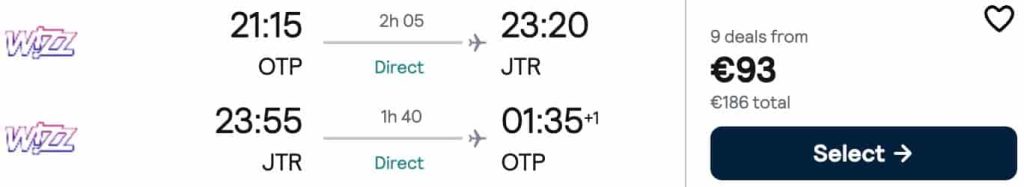 ZBOR: București -> Santorini, Preț dus-întors 93€/pers, 9-16 Iul 2026