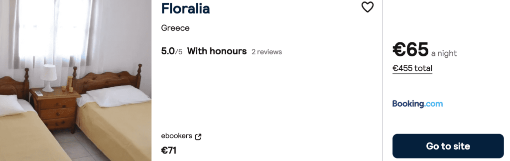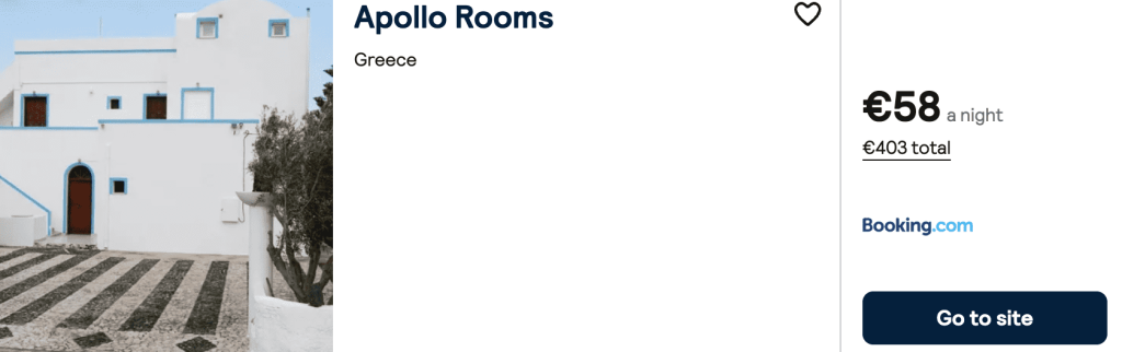 CAZARE 1: Apollo Rooms, Preț cameră dublă 403€, Preț persoană 202€, 1-8 Sep 2025 (7 nopți)