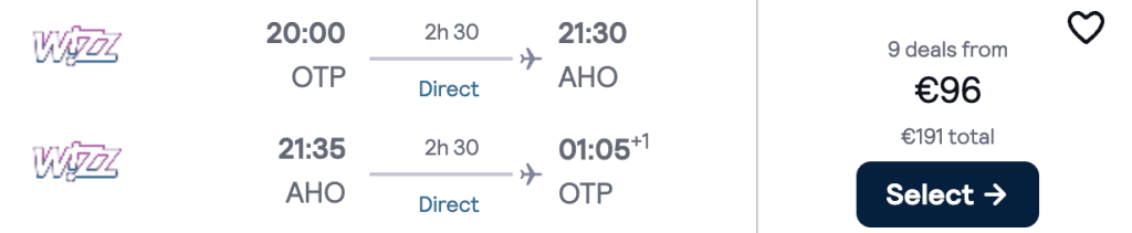 ZBOR: București -> Alghero, Preț dus-întors 96€/pers, 12-17 Oct 2025