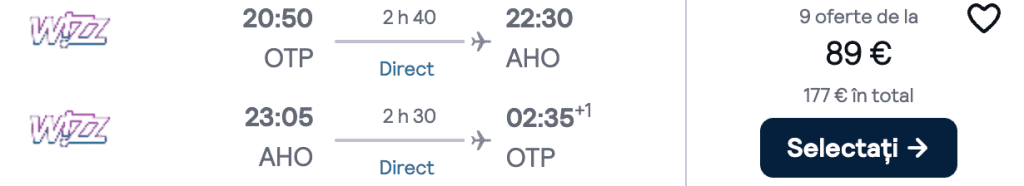 ZBOR: București -> Alghero, Preț dus-întors 89€/pers, 11-18 Mai 2025
