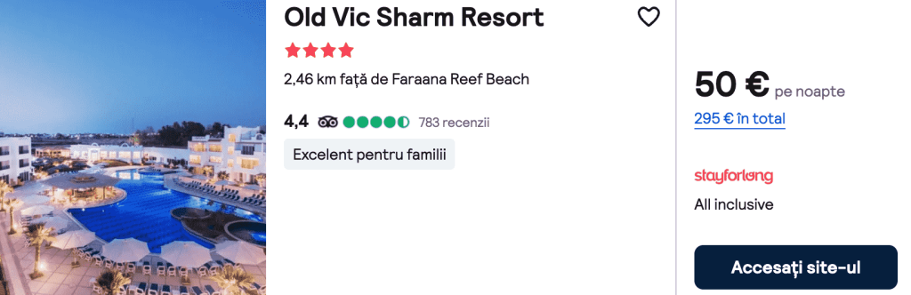 CAZARE 1: Old Vic Sharm Resort, Preț cameră dublă 295€, Preț persoană 148€, 3-9 Dec 2025 (6 nopți)