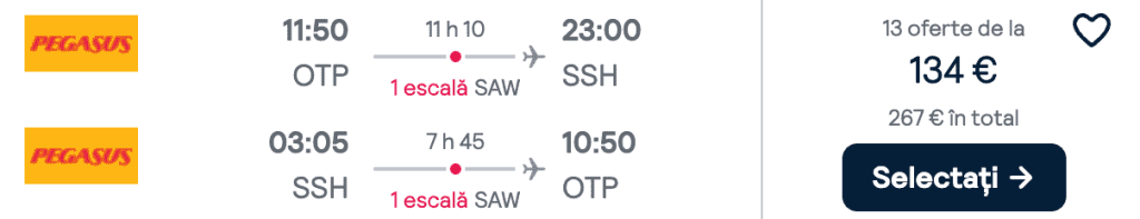 ZBOR: București -> Sharm El Sheikh, Preț dus-întors 134€/pers, 3-10 Dec 2025