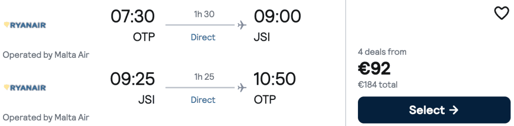 ZBOR: București -> Skiathos, Preț dus-întors 92€/pers, 3-10 Iun 2026