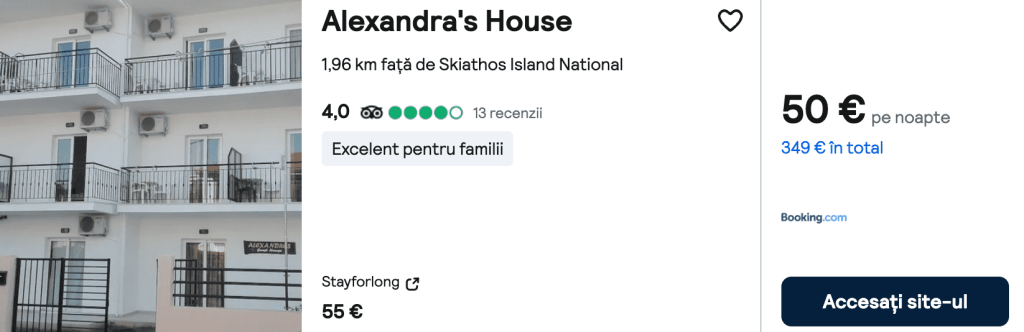 CAZARE 2: Alexandra’s House, Preț cameră dublă 349€, Preț persoană 175€, 4-11 Iun 2025 (7 nopți)