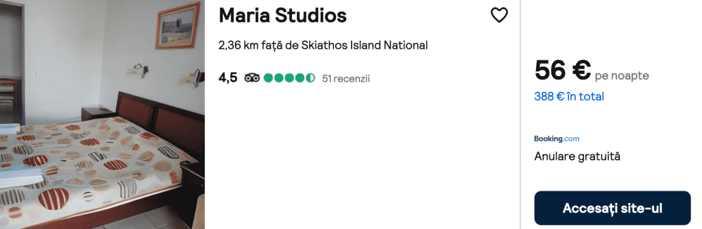 CAZARE 4: Maria Studios, Preț cameră dublă 388€, Preț persoană 194€, 4-11 Iun 2025 (7 nopți)