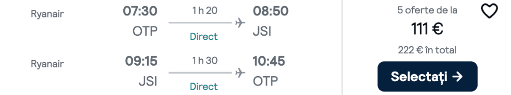 ZBOR: București -> Skiathos, Preț dus-întors 111€/pers, 4-11 Iun 2025