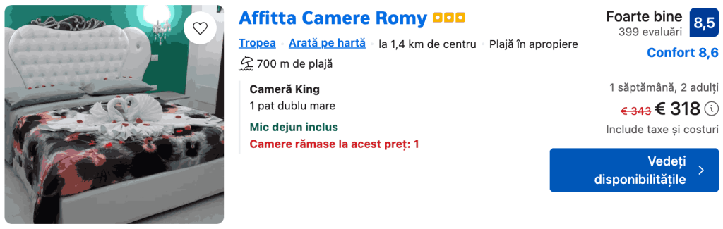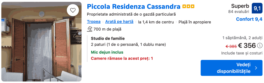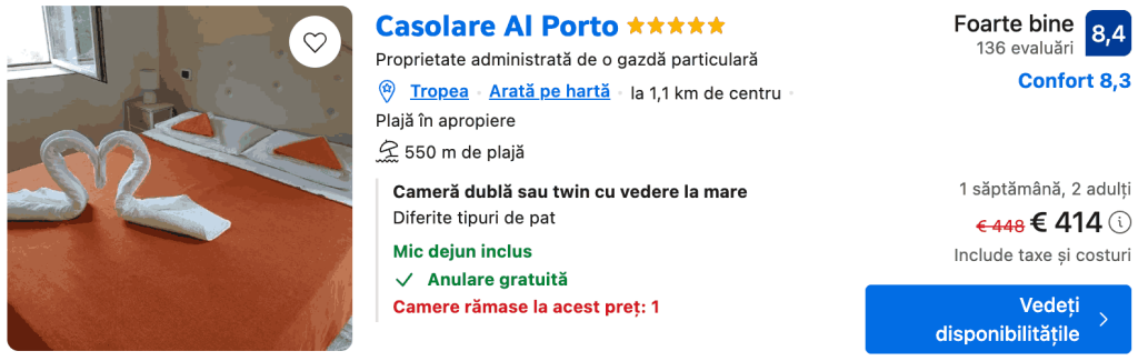 SEZON💥 Vacanță ieftină în TROPEA 196€ zbor și cazare + mic dejun 7 zile