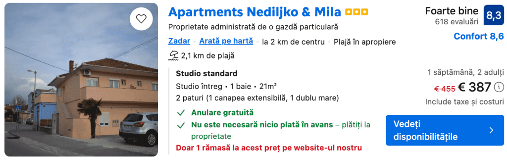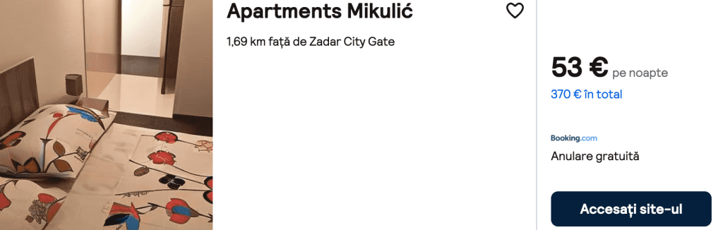 CAZARE 1: Apartments Mikulic, Preț cameră dublă 370€, Preț persoană 185€, 11-18 Iun 2025 (7 nopți)