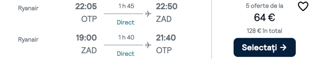ZBOR: București -> Zadar, Preț dus-întors 64€/pers, 11-18 Iun 2025