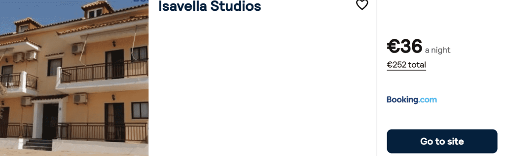 CAZARE 1: Isavella Studios, Preț cameră dublă 252€, Preț persoană 126€, 17-24 Sep 2025 (7 nopți)