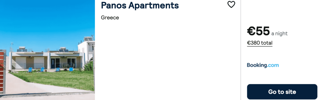 CAZARE 3: Panos Apartments, Preț cameră dublă 380€, Preț persoană 190€, 17-24 Sep 2025 (7 nopți)