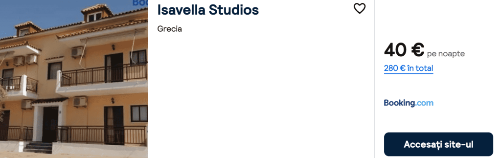 CAZARE 1: Isavella Studios, Preț cameră dublă 280€, Preț persoană 140€, 19-26 Iun 2025 (7 nopți)