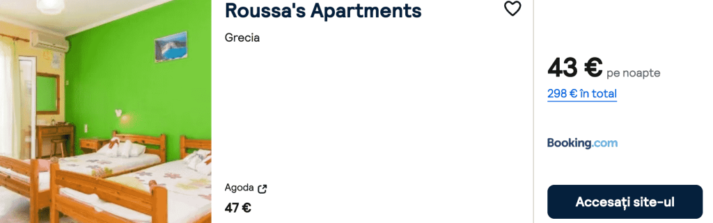 CAZARE 2: Roussa’s Apartments, Preț cameră dublă 298€, Preț persoană 149€, 19-26 Iun 2025 (7 nopți)