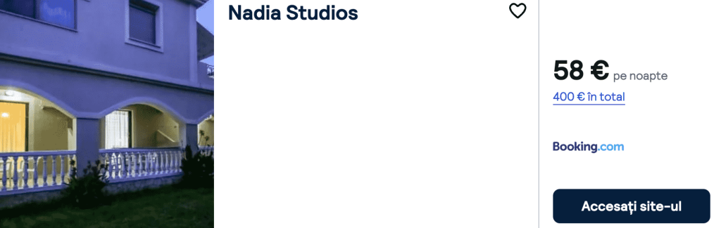 CAZARE 4: Nadia Studios, Preț cameră dublă 400€, Preț persoană 200€, 19-26 Iun 2025 (7 nopți)