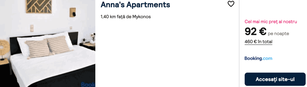 CAZARE 3: Anna’s Apartments, Preț cameră dublă 460€, Preț persoană 230€, 14-19 Iun 2026 (5 nopți)