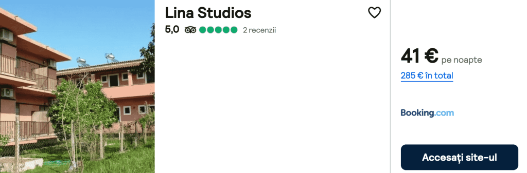 CAZARE 1: Lina Studios, Preț cameră dublă 285€, Preț persoană 143€, 17-24 Iun 2025 (7 nopți)