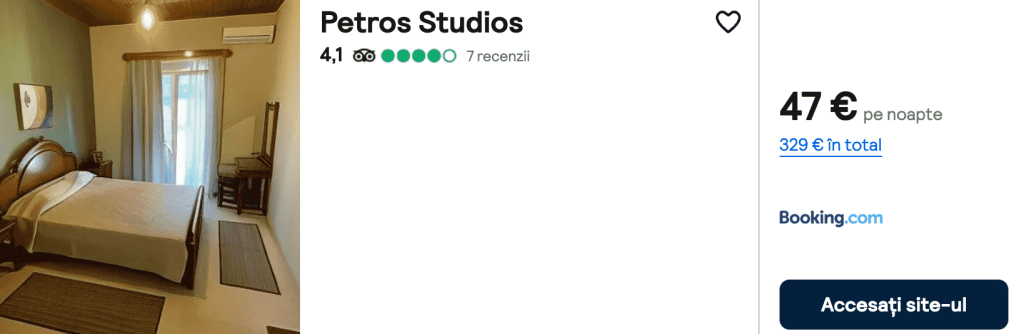 CAZARE 3: Petros Studios, Preț cameră dublă 329€, Preț persoană 165€, 17-24 Iun 2025 (7 nopți)