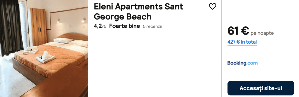 CAZARE 4: Eleni Apartments, Preț cameră dublă 427€, Preț persoană 214€, 17-24 Iun 2025 (7 nopți)