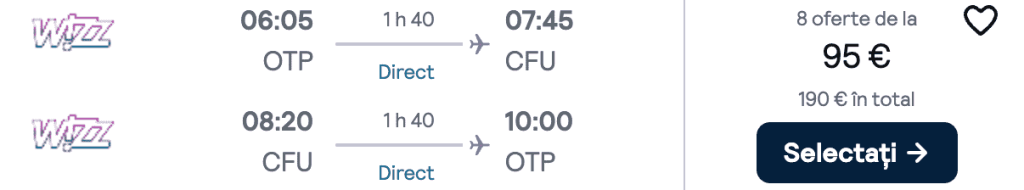 ZBOR: București -> Corfu, Preț dus-întors 95€/pers, 17-24 Iun 2025