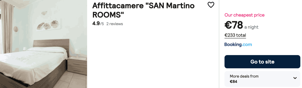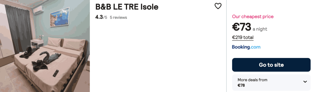 CAZARE 1: B&B Le Tre Isole, Preț cameră dublă 219€, Preț persoană 109€, 23-26 Apr 2026 (3 nopți)