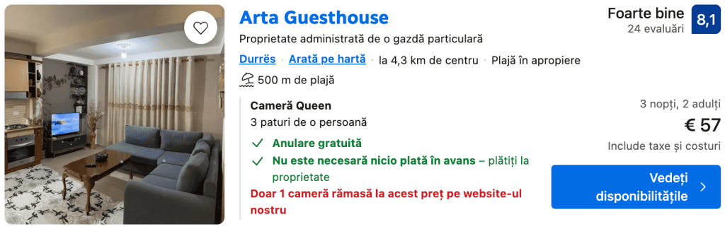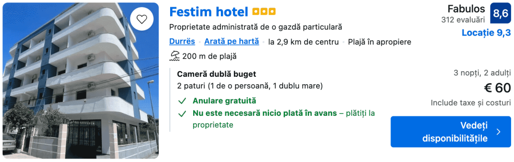 Este cea mai ieftină vacanță posibilă cu doar 62€ în ALBANIA, DURRËS cu zbor dus-întors și cazare 3 nopți de weekend.