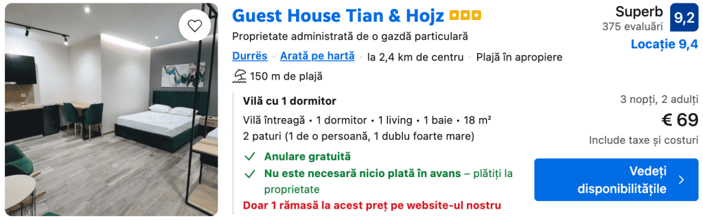 CAZARE 3: Guest House Tian&Hojz, Preț cameră dublă 69€, Preț persoană 34€, 17-20 Oct 2025 (3 nopți)