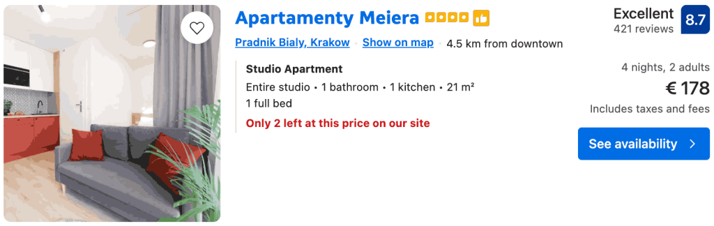 CAZARE 1: Apartamenty Meiera, Preț cameră dublă 178€, Preț persoană 89€, 14-18 Mai 2026 (4 nopți)