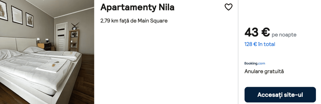 CAZARE 1: Apart Nila, Preț cameră dublă 128€, Preț persoană 64€, 14-17 Iun 2025 (3 nopți)