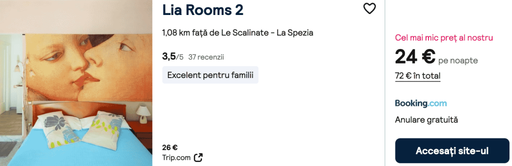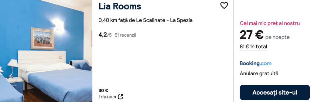CAZARE 2: Lia Rooms, Preț cameră dublă 81€, Preț persoană 41€, 30 Ian-2 Feb 2026 (3 nopți)