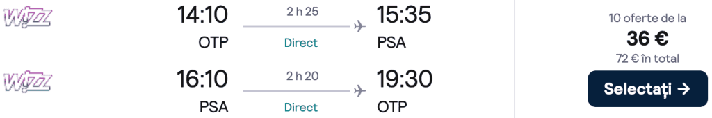 ZBOR: București -> Pisa, Preț dus-întors 36€/pers, 30 Ian-2 Feb 2026