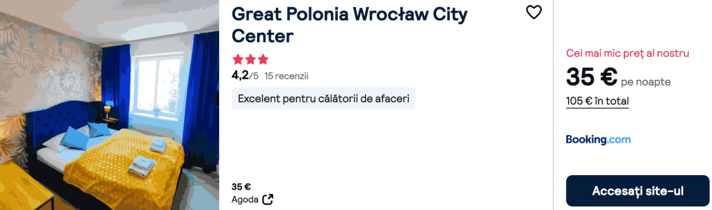 CAZARE 1: Great Polononia City Center, Preț cameră dublă 105€, Preț persoană 53€, 28 Feb-3 Mar 2026 (3 nopți)