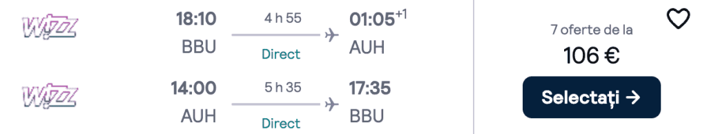 ZBOR: București -> Abu Dhabi, Preț dus-întors 106€/pers