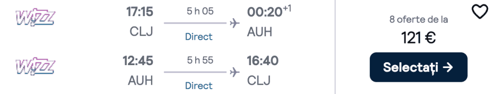 ZBOR: Cluj -> Abu Dhabi, Preț dus-întors 121€/pers