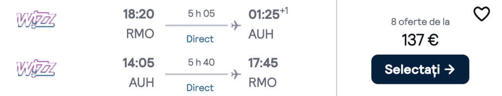 ZBOR: Chișinău -> Abu Dhabi, Preț dus-întors 137€/pers