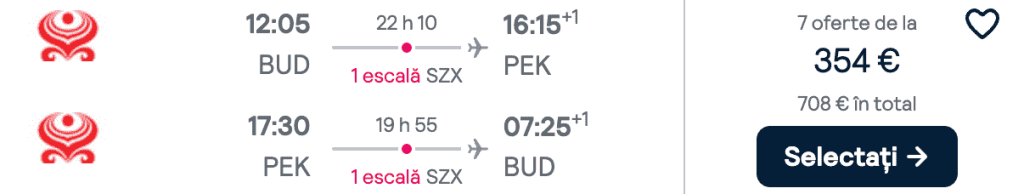 ZBOR: Budapesta -> Beijing, Preț dus-întors 354€/pers