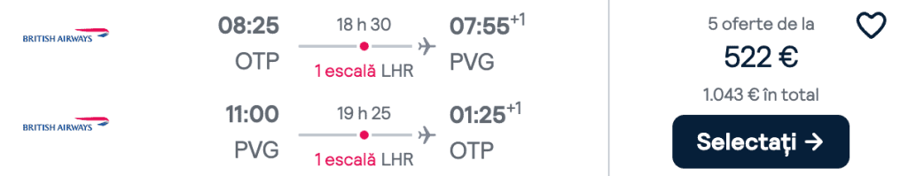 ZBOR: București -> Shanghai, Preț dus-întors 522€/pers